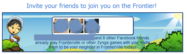 "8 other Facebook friends already play Frontierville or other Zynga games" it reads, suggesting these friends are likely to join you in a new game. In reality, of the three pictured, one only plays Zynga poker, one plays only word games and the third plays absolutely no Zynga games according to the Facebook Games Page. The fact that these three 'recommended' friends do not play any Zynga Virtual World games means that they are unlikely to start if they receive a random request to play. In a social media culture where game requests are already seen as a burden by many, such an invite is more likely to annoy my friends, not make our friendship stronger.