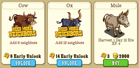 In addition to using energy-based activities to progress or build a character, the game relies heavily on a form of social interaction. First, this is done by encouraging (some may argue pressuring) friends to play the game and become neighbors. Second, it is further relied on in the form of requesting items from friends that play the same game, and done via Facebook, not the game itself.